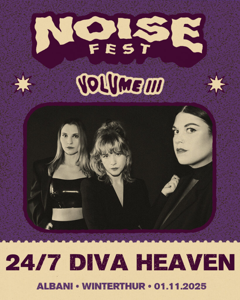 With their highly acclaimed debut album „STRESS“ (Noisolution), released in 2021, 24/7 DIVA HEAVEN made one thing clear: they are here to stay. Or, to quote „Classic Rock“ magazine: „Ready for trouble. Relevant. Fantastic. Period.“ Shortly after the release of their debut, the Berlin trio was the talk of the town and filled the pages of the German music press. With their musical hybrid of punk, grunge, and noise, 24/7 DIVA HEAVEN create a world where you can scream, scratch, and bite – and end up hugging it out. Fuzzy riffs meet catchy hooklines, political messages meet self-irony. 24/7 DIVA HEAVEN speak their minds and strike a chord, delivering a soundtrack that fits these uncertain times perfectly, refusing to settle for platitudes and leaving room for the in-between.